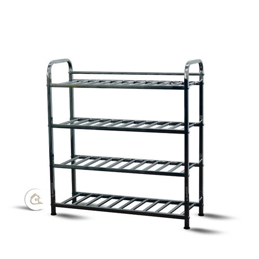 Compact and durable design, ideal for organizing shoes in a small space. Sturdy metal construction for stability and long-lasting use. Open rack design allows for easy access and ventilation. Perfect for organizing entryways, closets, or storage rooms, this 4-tier metal shoe rack offers ample space while maintaining a sleek, space-saving structure